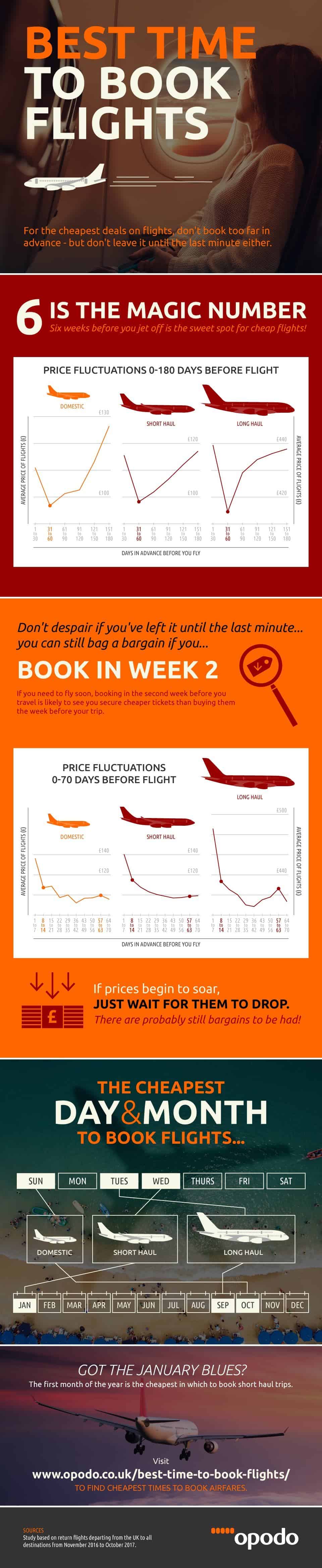 The “best time to book flights” study was conducted by Opodo, and was based on return flights departing from the UK to worldwide destinations from November 2016 to October 2017. Opodo is a leading online travel agency that can find the best airfares online, so visit their website if you’re looking to book your next trip.