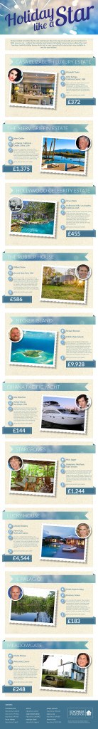 This infographic turned up in the Grown-up Travel Guide inbox a few days ago and opened our eyes to a whole different type of accommodation – the former homes of the stars of stage and screen, rock stars and a token boy-band member if that’s your thing.