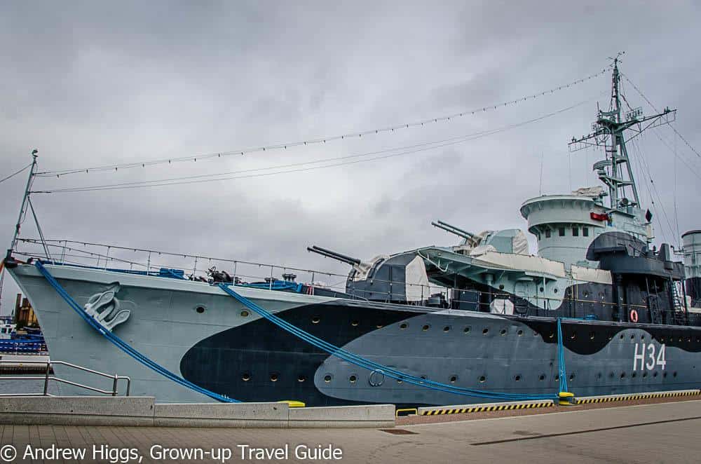 The southern pier of Gdynia Harbour has a number of interesting attractions. One of the first that greets you is the massive destroyer-class ship ORP Blyskawica. She was built in England and completed in 1937, and fought in World War II.