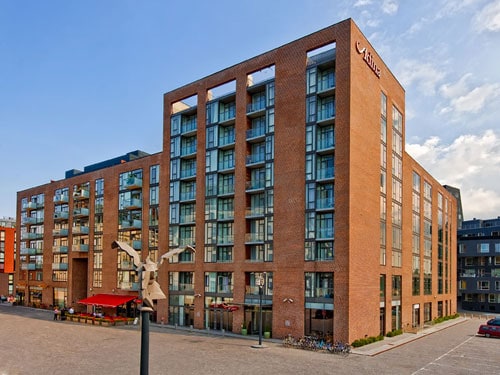 The apartment hotel is located in a new and attractive harbourside development in Nordhavn and is such very convenient if arriving by boat. In any case it won’t take you more than 20 minutes to reach the city centre using the regular bus service that stops close to the hotel. If you so desire you can walk it in about 30-40 minutes and take in the mystifyingly popular and staggeringly overrated Little Mermaid on the way: