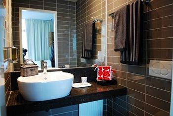 The bathroom was modern and practical with a shower and washbasin. In keeping with the hotel’s green image soap and shampoo are in dispensers instead of small bottles. Hair dryer provided.