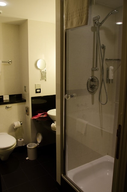 CRT TV(!), work desk, tea/coffee making facilities, mini bar, small fridge space, safe, iron, ironing board. The majority of rooms are listed as non-smoking rooms – I didn’t realize you could still smoke in a hotel room in the UK but it may be that the information provided was out of date.