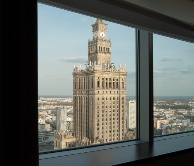 This time it was just myself and my better half who were on the concert trail. We had tickets to see Roger Waters perform “The Wall” live in Lodz, Poland and had booked a room at the excellent Andels Hotel. However we had to stop over in Warsaw first and I had previously read about the low cost of luxury hotels in Poland. As we were able to book early enough I scored a great deal on a room at the Inter Continental (pictured above) which is right opposite the Gotham City style Culture centre and just around the corner from the railway station. I had also informed the hotel that we were travelling to Poland for the first time and on a romantic weekend (indeed I may have said it was our anniversary…) and also that I was a Priority Club member (the hotel loyalty program me) although I didn’t have many points. Anyway when we checked in I was informed that we had been upgraded to a deluxe room so clearly something worked. The Inter Continental is a fabulous skyscraper of a hotel and we were greeted by a big corner room with a superb view across Warsaw.