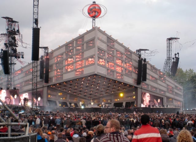 Catching a gig in a foreign country gives you two experiences for the price of one. If you live somewhere a little off the main tour circuit it may also be the only way to see your favourite band and in some cases to experience the full stage show of a group that is just too big for the venues of your home country. The best way to keep up with tour dates is to subscribe to your favorite band’s newsletter or fan site; we received an email from the Muse website as soon as the details were available. Rebecca – eight at the time – was already a fan of the band (admittedly there may possibly have been a slight ‘guiding hand’ involved initially but her love of their music was and remains genuine) so a plan began to form. A little research online showed Goffertpark to have a great reputation as a venue and even better that there was a great hotel right next to the park with a big swimming pool and spa area, the Scandic Sanadome. Nijmegen is an easy rail journey from Amsterdam which was the icing on the cake as it is a great place to take kids. Concert tickets were then duly purchased and printed out at home (no need to queue up to collect them in Holland), hotel and train reservations made and return flights to Amsterdam sorted. On the day of the concert we took the train south from the capital and with predictable Dutch efficiency arrived in Nijmegen without a hitch and right on time. The excitement was palpable as we checked in to the hotel, with Muse fans making up a sizable proportion of the clientele. After having dinner we walked the short distance to the Goffertpark entrance and entered the concert area, catching our first proper view of the enormous stage set.