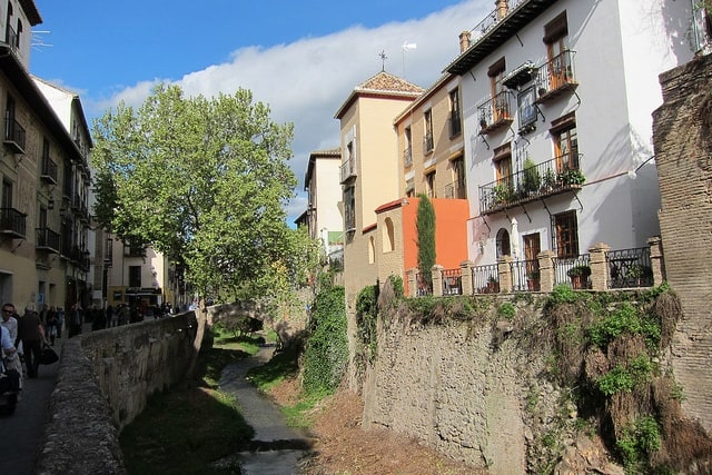 The entire left bank of the River Darro is known as the Carrera del Darro and is one of the most beautiful walks in Granada. There are two brick and stone bridges (Cabrera and Espinosa) which link Carrera del Darro with the Churra neighborhood. The street dates from the 17th century. Many interesting original buildings are still standing including the remains of Arab houses.