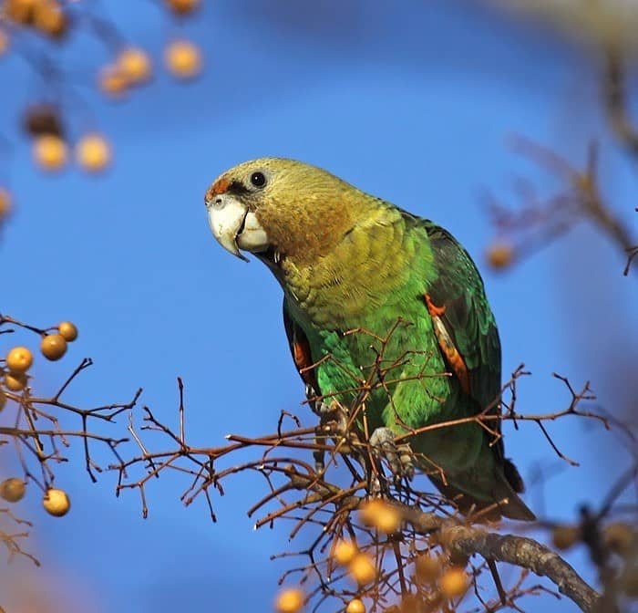 Not the typical bird you may expect to see when on safari, the Cape Parrot will be a welcomed surprise, with its bright green and red foliage. They feed on nuts and kernels, hence their very hard and capable beak. As like other parrots they can be quite noisy and you will know that squawking way before you get up close.