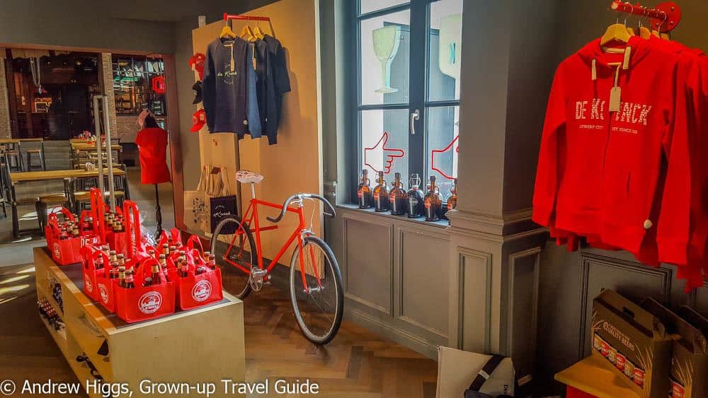But let’s start at the beginning, with the De Koninck shop. Already here you will notice that they do things a little differently, with an incredible array of beer merch…
