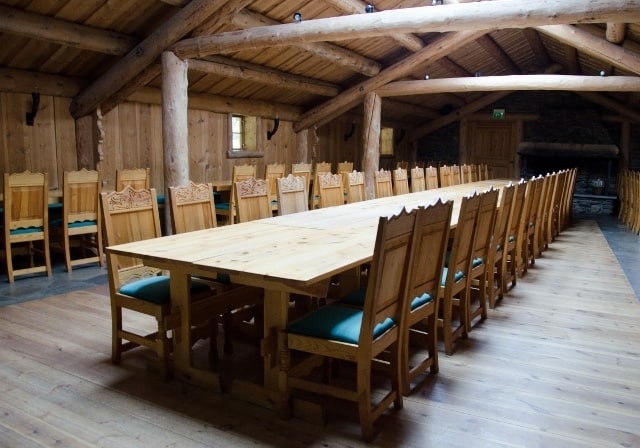 It’s a pleasant walk up and on reaching the summit the cabin appears on the edge of the mountaintop. It’s a spectacular construction of mainly wood and glass (no nails, screws or glue used – only wood plugs) affording stunning views.