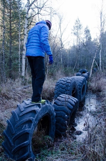 A trail in the forest connects different obstacles such as tyres to clamber over (rather tricker when covered in ice as they were for our visit) and more cerebral challenges involving puzzles and tower building.