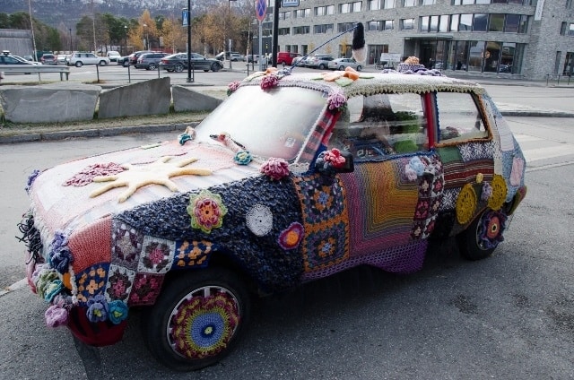 We had time to visit the local crafts shop (rather a sight in itself with its traditional grass roof) and check out the car outside – a cool way to show off the knitting skills of the experts who sell their wares inside.
