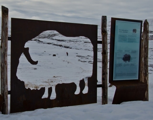 At the start of the trail there is an information board about the national park, the viewpoint project and the wildlife in the area – which includes the Musk Ox. There is a helpful visual aid to show you what one of these beasts looks like from 200m – which is as close as you should come to one as they can move at 60kph…