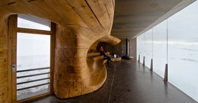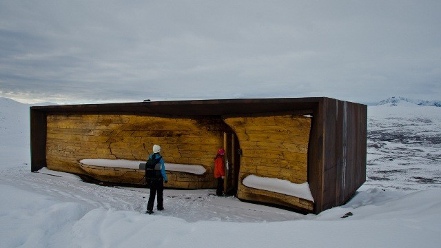 A rather unique attraction, Viewpoint Snøhetta is located about 45 minutes drive south of Oppdal at Hjerkinn, not far from Dombås on the road to Oslo. It is essentially a cabin in the mountains overlooking the peak of Snøhetta, which also gives its name to the architectural firm that designed it – and is also famous for the Oslo Opera House.